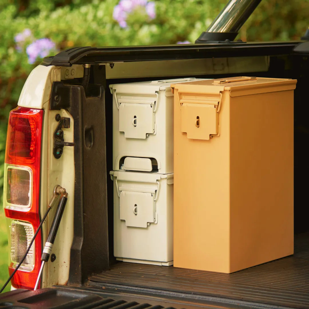 Our products are all designed to our MILEX system standards which means they can be carried in MILEX standard fuel can holders for secure, safe, efficient & hygienic external storage.